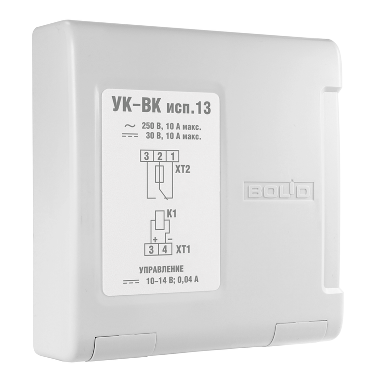 УК-ВК исп. 13 Болид - является релейным усилителем на 1 канала с креплением на DIN рейку. Используется в системах охранно-пожарной сигнализации и рассчитан для управления подключением и отключением приборов, которые входят в состав систем, а также коммутацией исполнительных устройств (ламп, сирен, видеокамер, систем пожаротушения, электромагнитных замков и т.д.) к сети переменного тока 220 В или источнику постоянного тока напряжением до 30 В путем замыкания и размыкания контактов реле. В системах пожарной сигнализации устройство предназначен для передачи стартового импульса на прибор пожарный управления.
