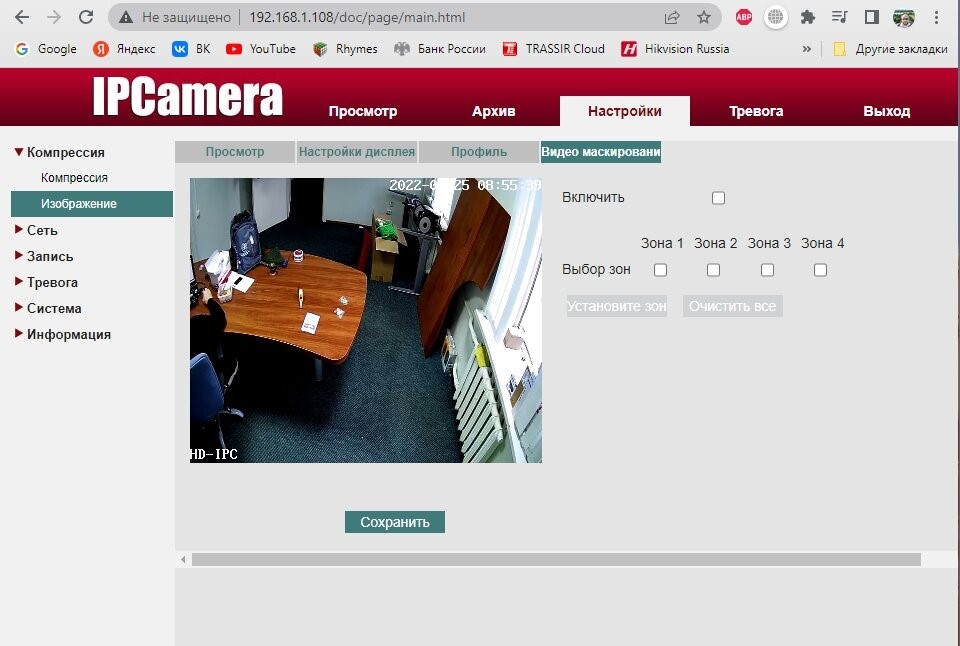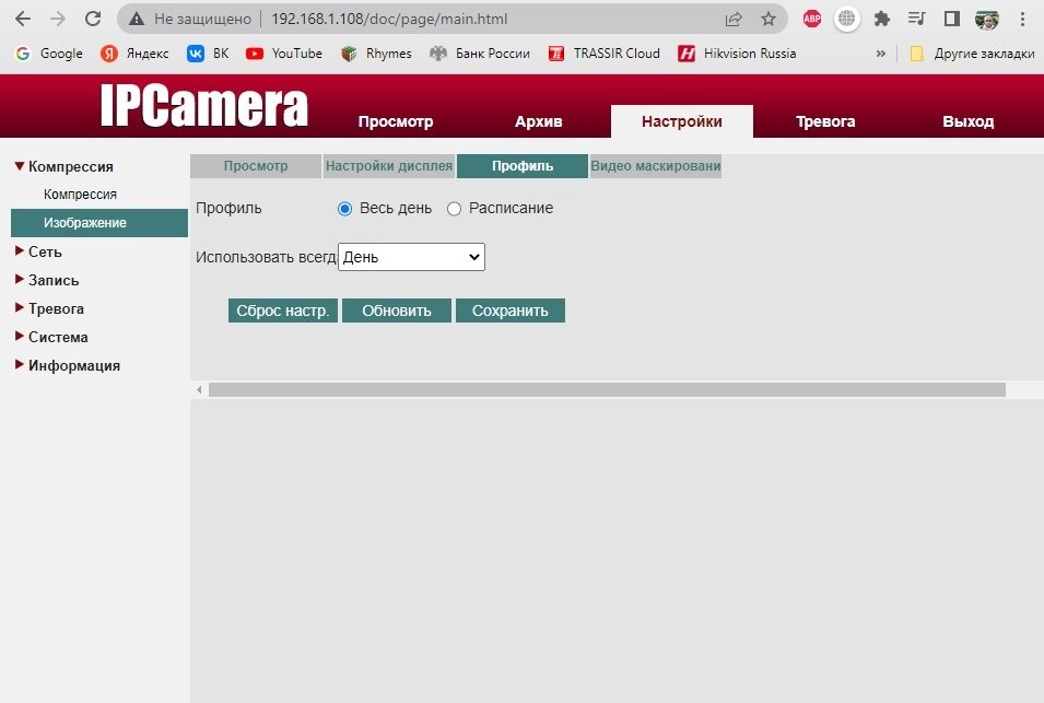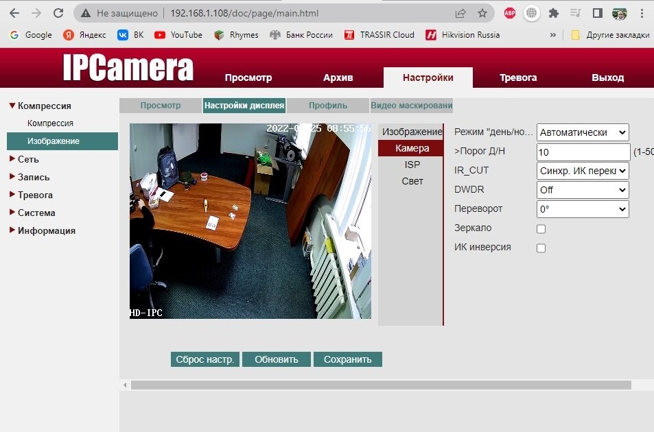 Ну, а в настройках уже появляются "артефакты" локализации. Что-то остаётся без перевода, причём если в случае с dWDR я могу это простить (хотя думаю, для чуть менее искушённого пользователя это может стать препятствием), то IR-Cut необходимо перевести! Ну, и к слову "компрессия" тоже можно придраться.